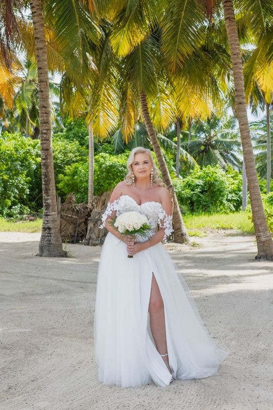 After the vows, we organized a relaxed photo session along the shoreline. The turquoise water and palm groves provided varied backdrops. Photographer focused on candid smiles, tiny footprints, and family embraces. As a result, the images feel intimate and timeless.