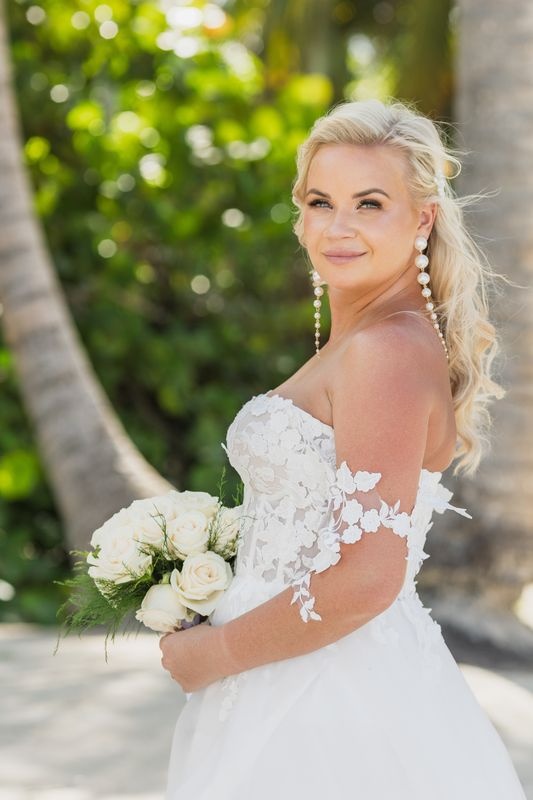In short, this beach wedding in Punta Cana celebrated love and family. The bamboo arch, white florals, azure sea and playful toddler combined into a perfect, heartfelt day. If you dream of a family wedding by the ocean, contact us to plan every detail.