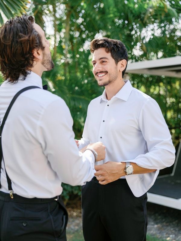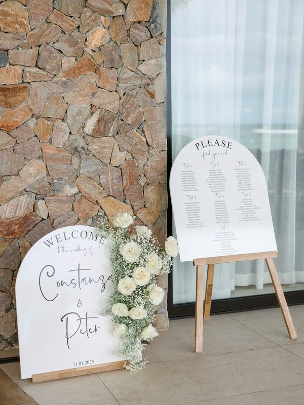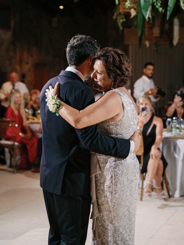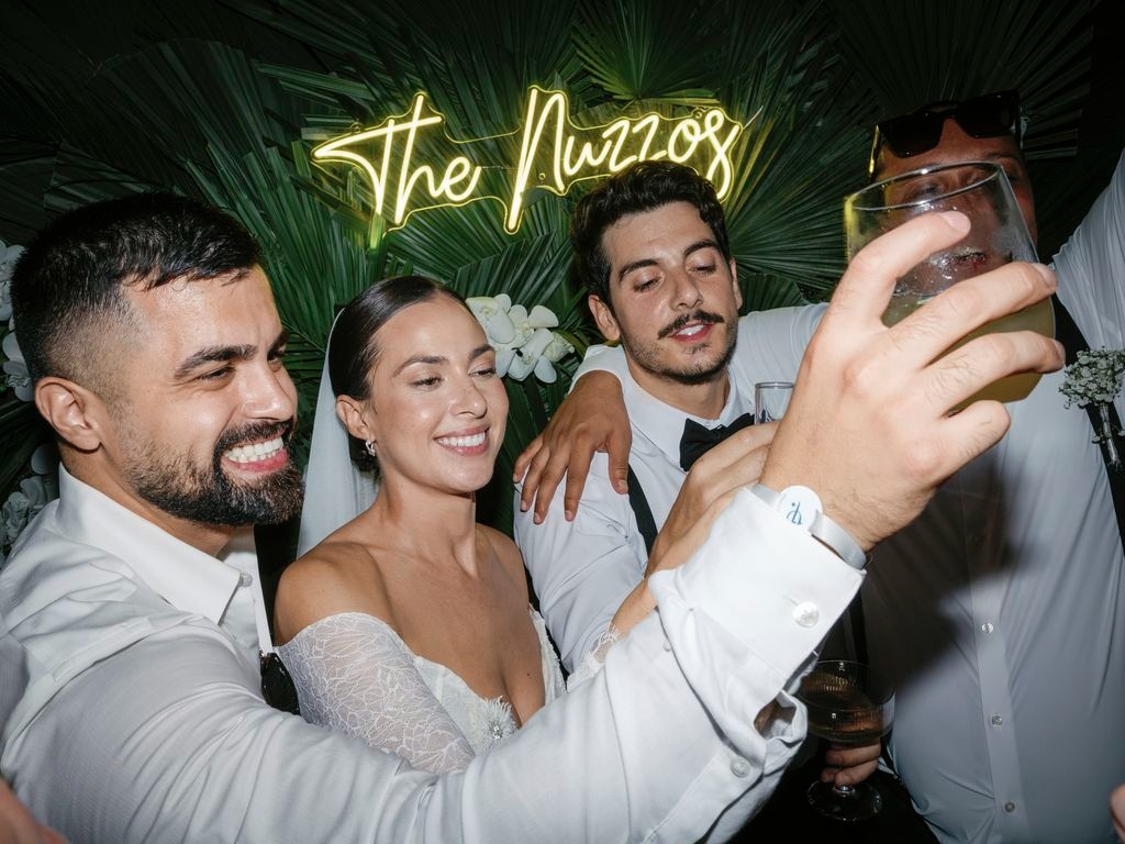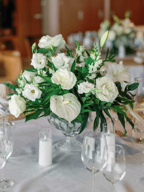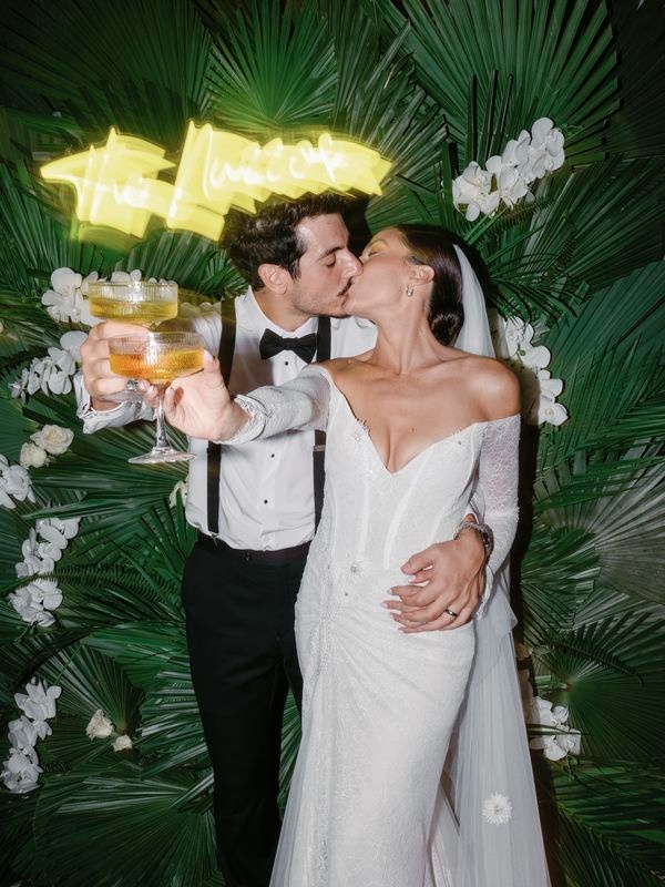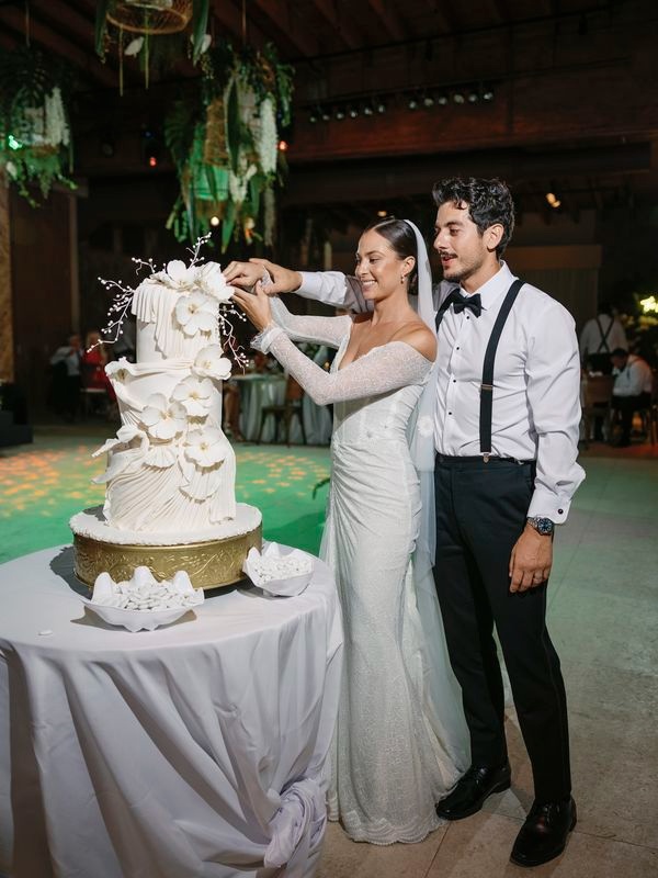 After the vows, everyone moved to the charming Chez Bisutti restaurant for the reception. The transition from sand to dining felt seamless, and the décor immediately captured hearts. Tables featured lush green arrangements mixed with crisp white flowers, creating a chic tropical palette that felt both fresh and refined. In addition, carefully chosen lighting and thoughtful details made the venue warm and intimate.