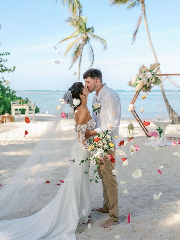 Destination elopement in Punta Cana was the perfect choice for Maegan and Kevin. They decided to celebrate their elopement on a private beach in the Dominican Republic, far from hotel areas and tourist crowds, enjoying a peaceful and truly intimate experience.