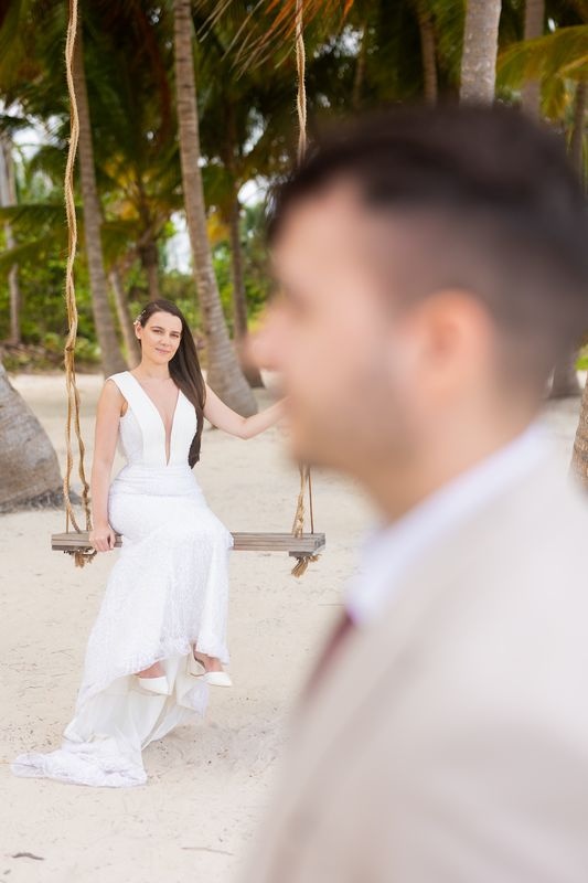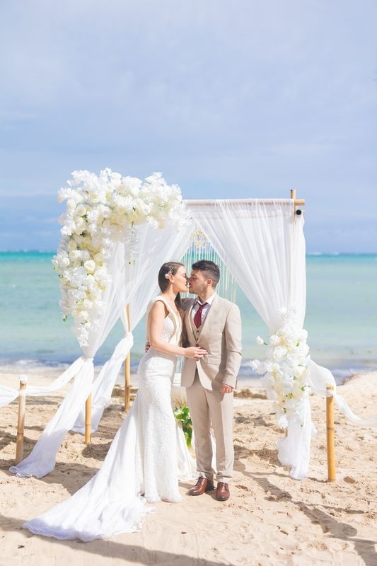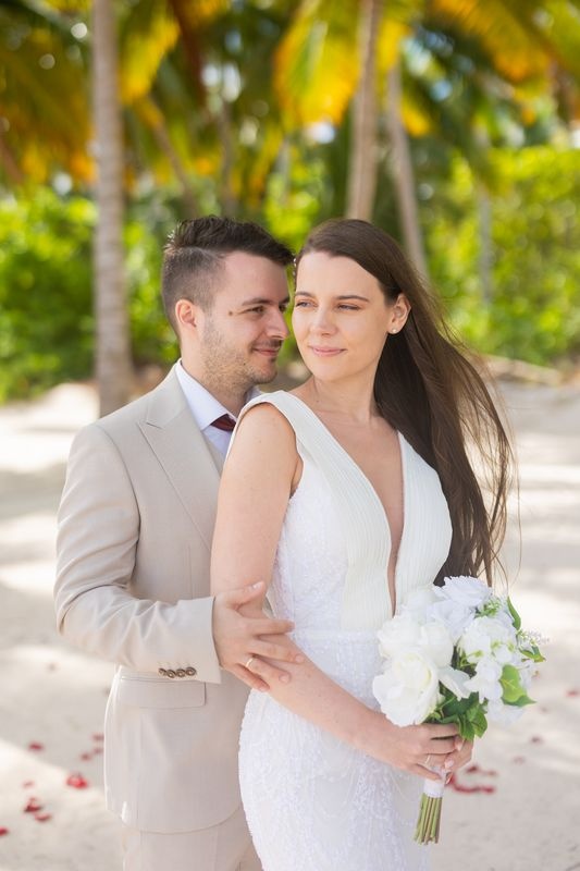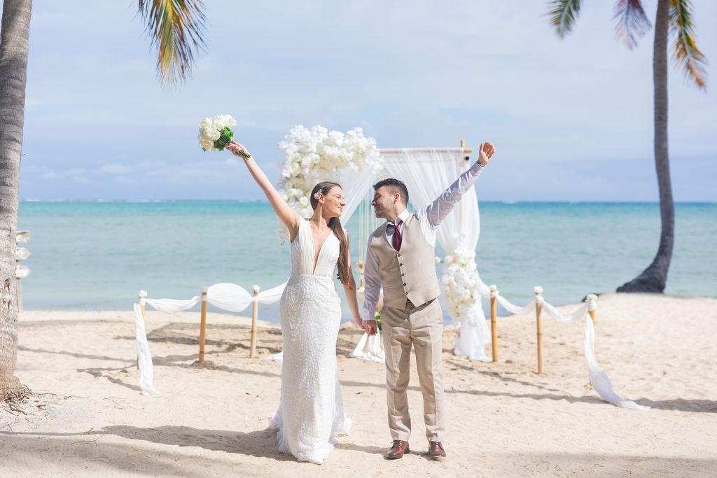 An intimate wedding in Punta Cana offers couples a romantic and meaningful way to celebrate their love. Nikola and Marsela chose a private ceremony for two on a turquoise beach, surrounded by tall palms and soft white sand. Caribbean Wedding designed every detail to reflect their emotions and style.
