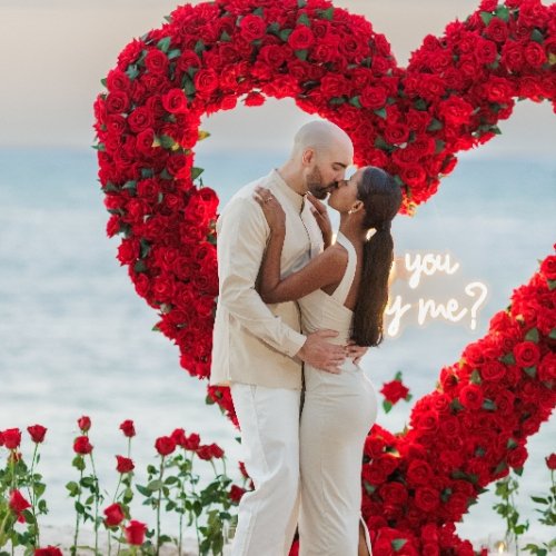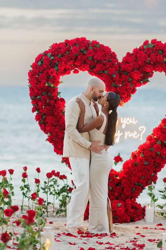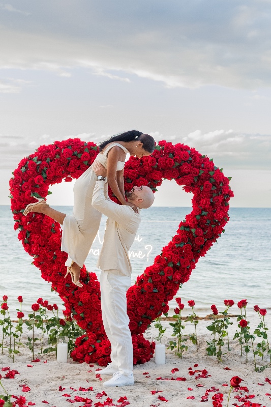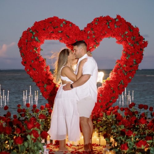In the picturesque haven of Punta Cana, Dominican Republic, a marriage proposal unfolded beneath the captivating allure of a stunning white roses heart arch. Against the backdrop of tropical splendor, this intricately crafted floral masterpiece stood as a symbol of purity and timeless commitment. The heart-shaped arch, adorned with pristine white roses, became a breathtaking focal point, merging the natural beauty of Punta Cana with the elegance of a romantic gesture.