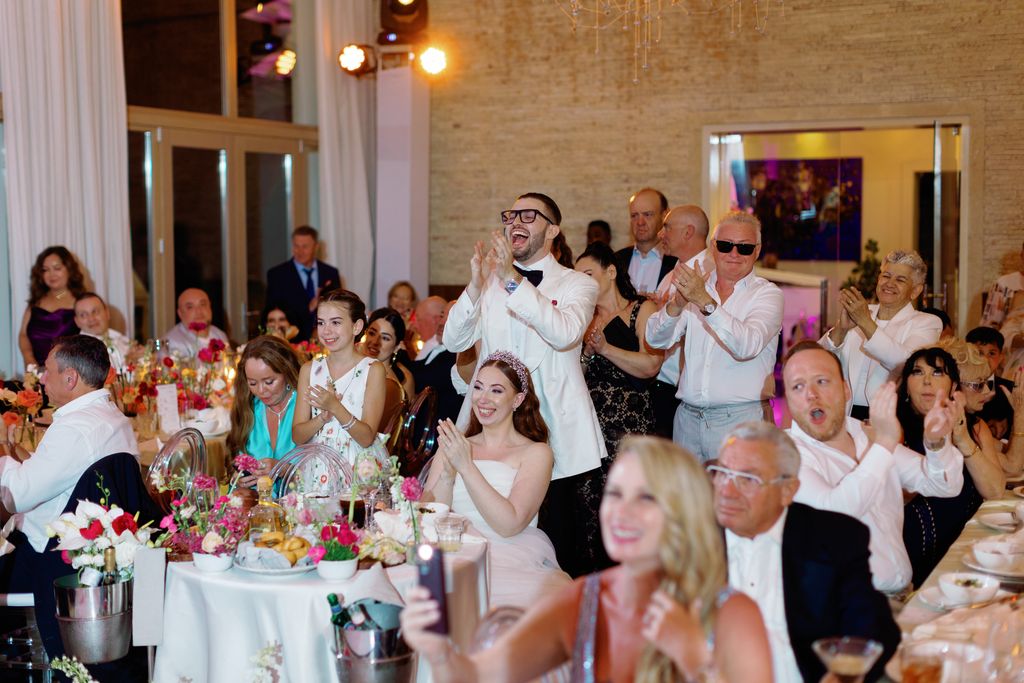 The festivities started with a welcome dinner. Guests were greeted with a warm atmosphere, delicious cuisine, and elegant décor. The evening also featured the signing of the Ketubbah, an emotional and sacred Jewish tradition that marked the official beginning of the couple’s union.