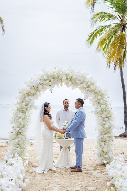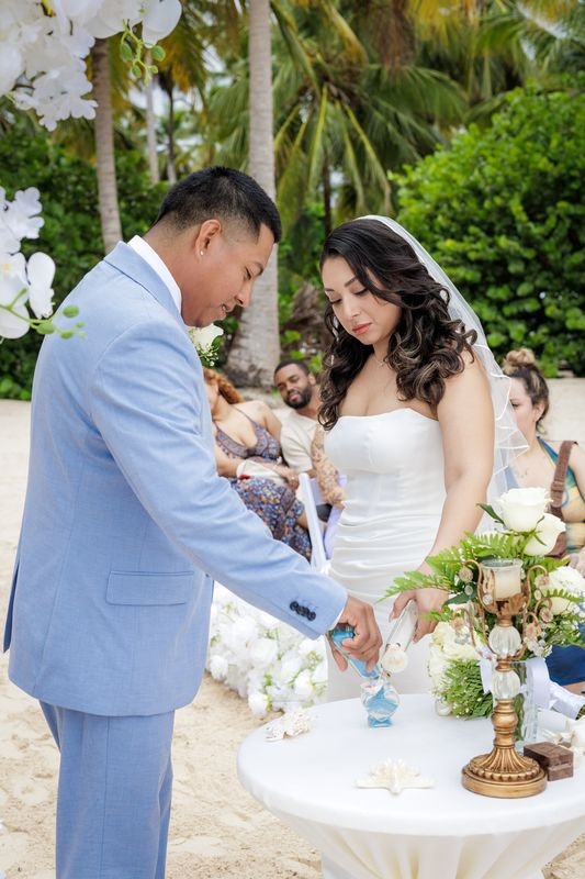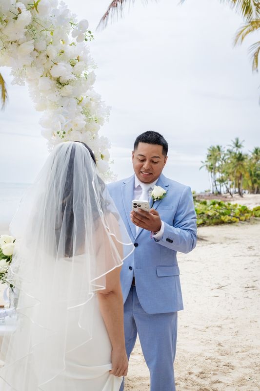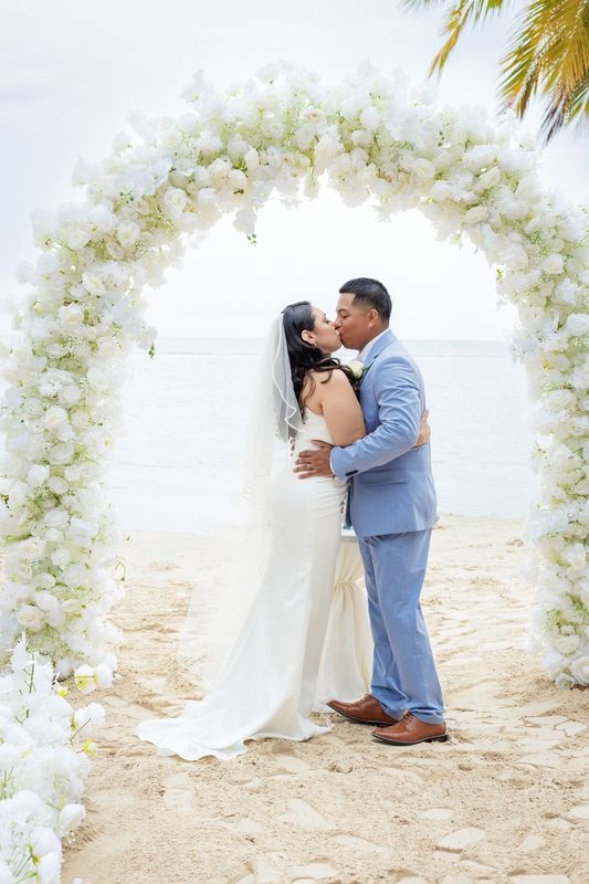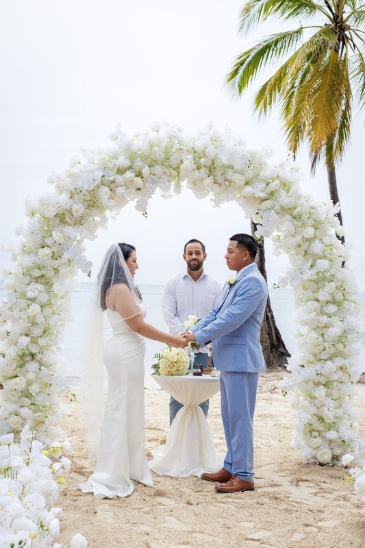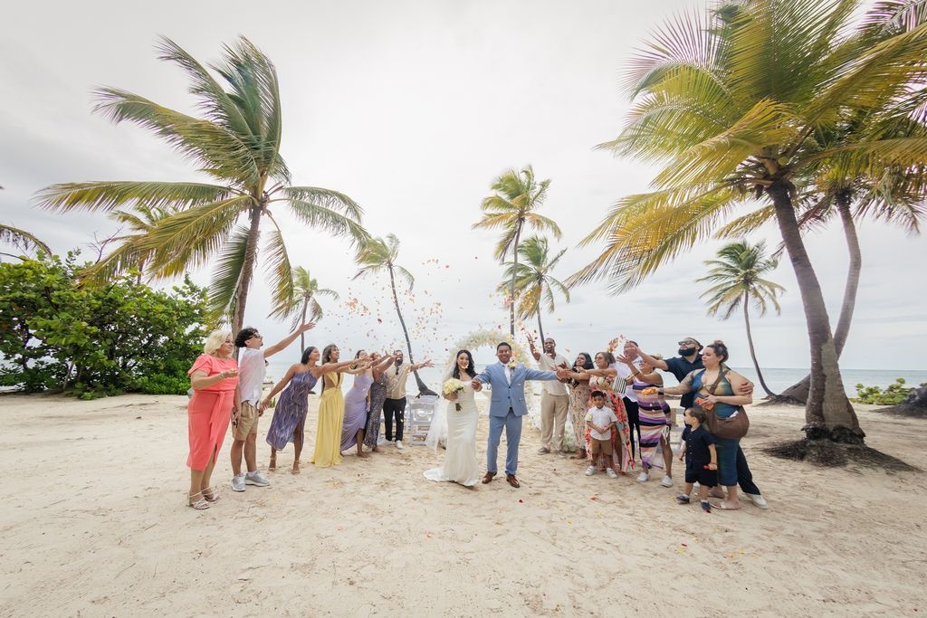 The beautiful Yolin & Pedro elopement wedding on a private beach was intimate, joyful, and full of love. Surrounded by family and friends, they celebrated their special day with the sound of the ocean and the warm Caribbean breeze. The soft sand and turquoise sea created a perfect setting for this unforgettable moment.